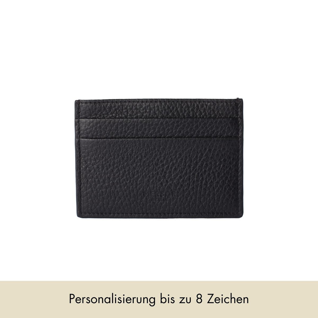 Unser Bestseller: Kartenhalter aus schwarzem, genarbtem Leder.