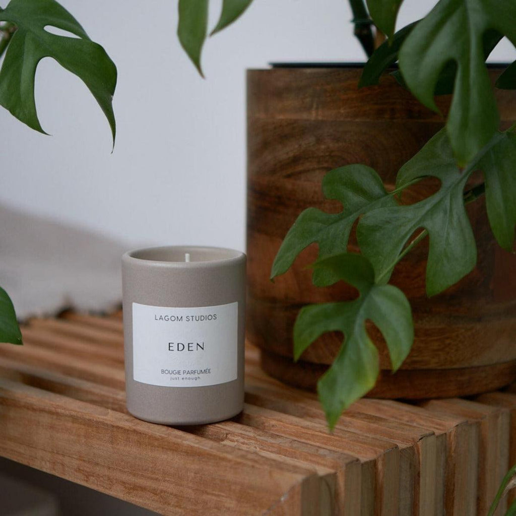 Die vegane Eden Duftkerze füllt Deine Wohnung mit dem aromatischen Duft von frischem Thymian und Rosmarin – 100% vegan und nachhaltig!