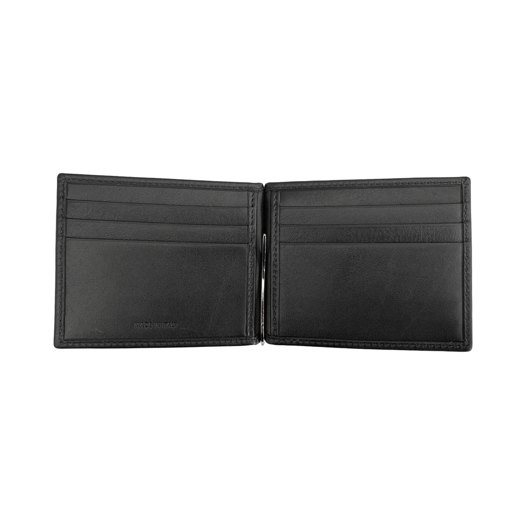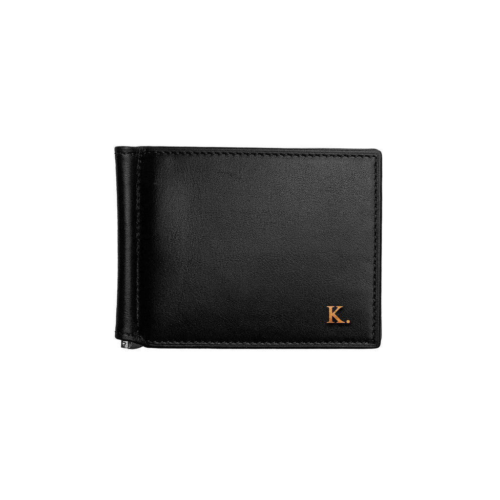 Geldbörse mit Geldscheinklammer aus schwarzem Glattleder mit Monogramm.