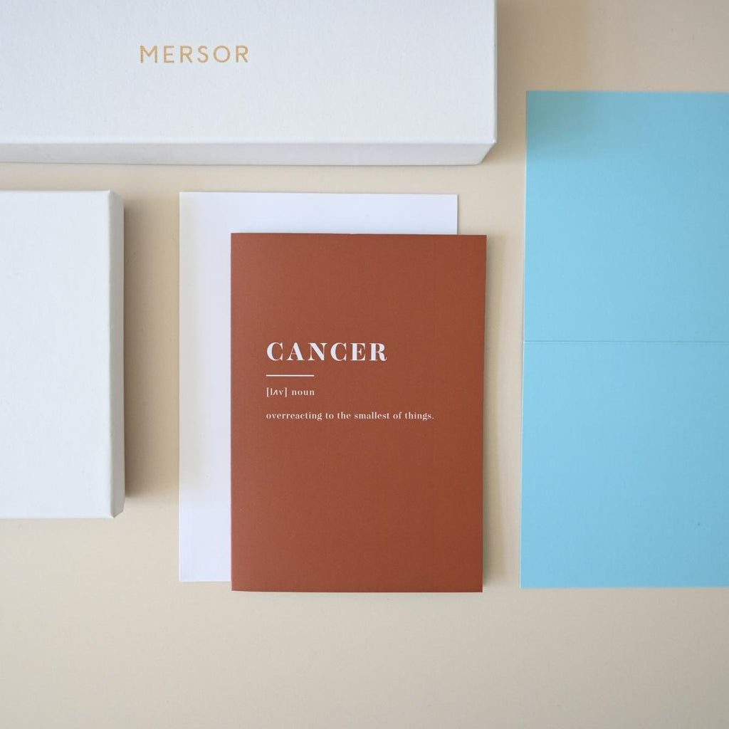 Die perfekte Grußkarte für das Sternzeichen Krebs in einem stilvollem Rostbraun mit passendem Briefumschlag. Hinterlasse einen bleibenden Eindruck und verschenke jetzt mit MERSOR!
