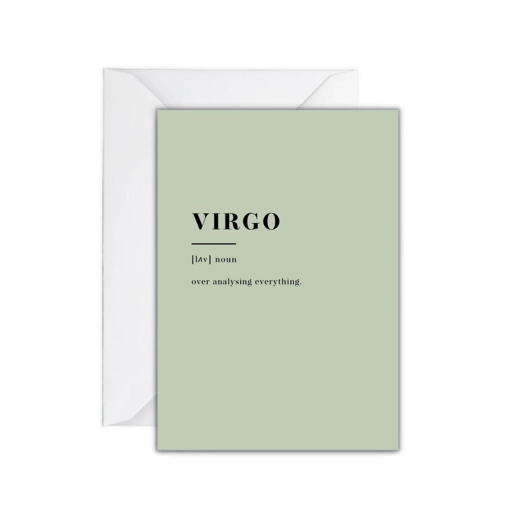 Die Grußkarte „VIRGO mit dem Spruch „over analysing everything." verleiht Deinem Geschenk einen ganz persönlichen Touch und sorgt garantiert für einen Schmunzler.