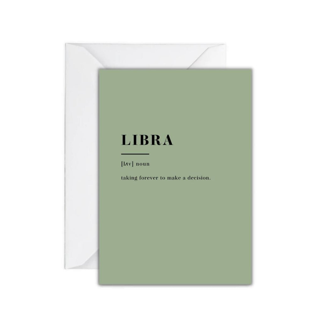 Die Grußkarte „LIBRA“ mit dem Spruch „taking forever to make a decision." verleiht Deinem Geschenk einen ganz persönlichen Touch und sorgt garantiert für einen Schmunzler.
