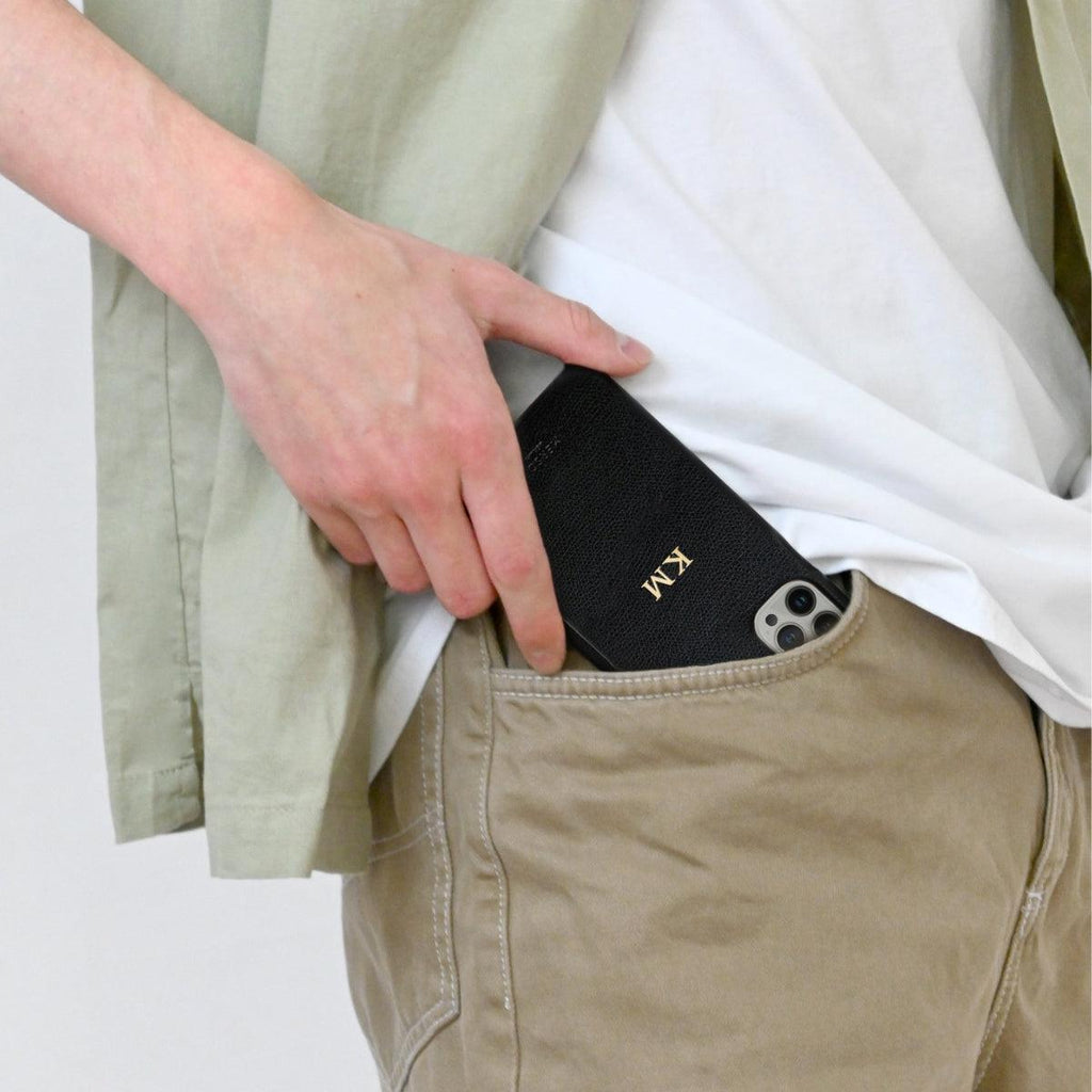 Schwarze iPhone 14 Plus Hülle mit kostenloser Personalisierung bei MERSOR! Personalisiere jetzt kostenlos Deine iPhone 14 Plus Hülle aus Leder – jetzt mit MERSOR verschenken!