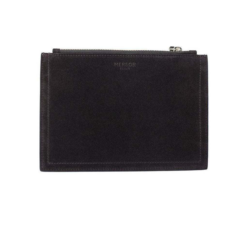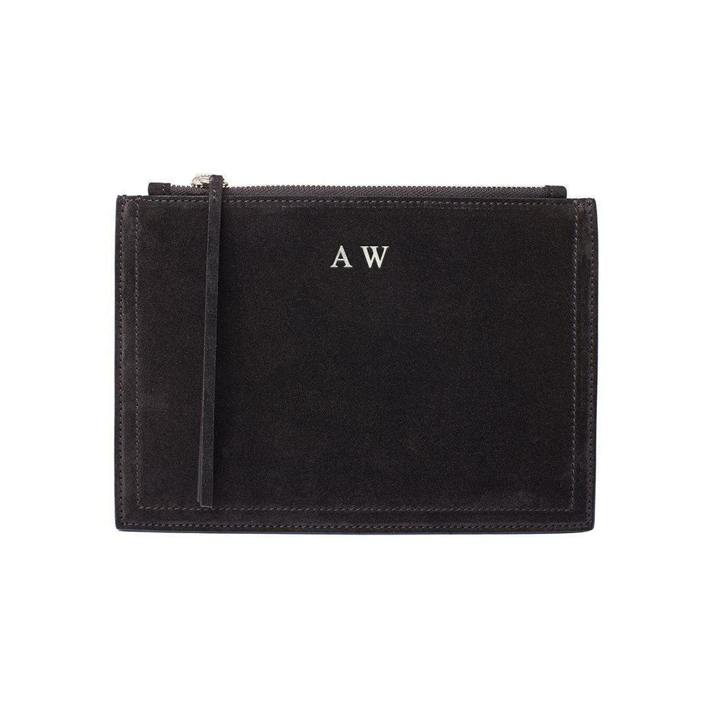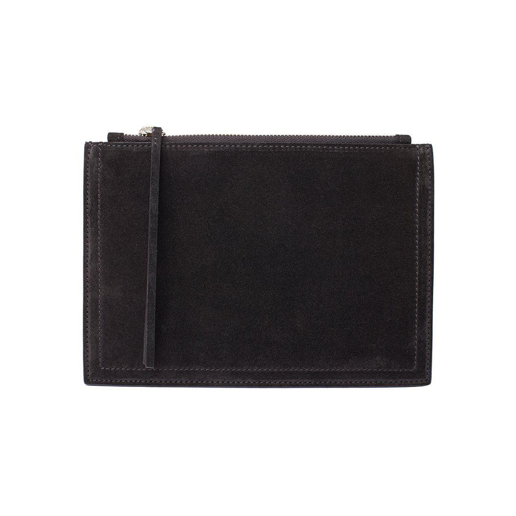 Kleine Pouch aus schwarzem Wildleder mit silbernen Akzenten.