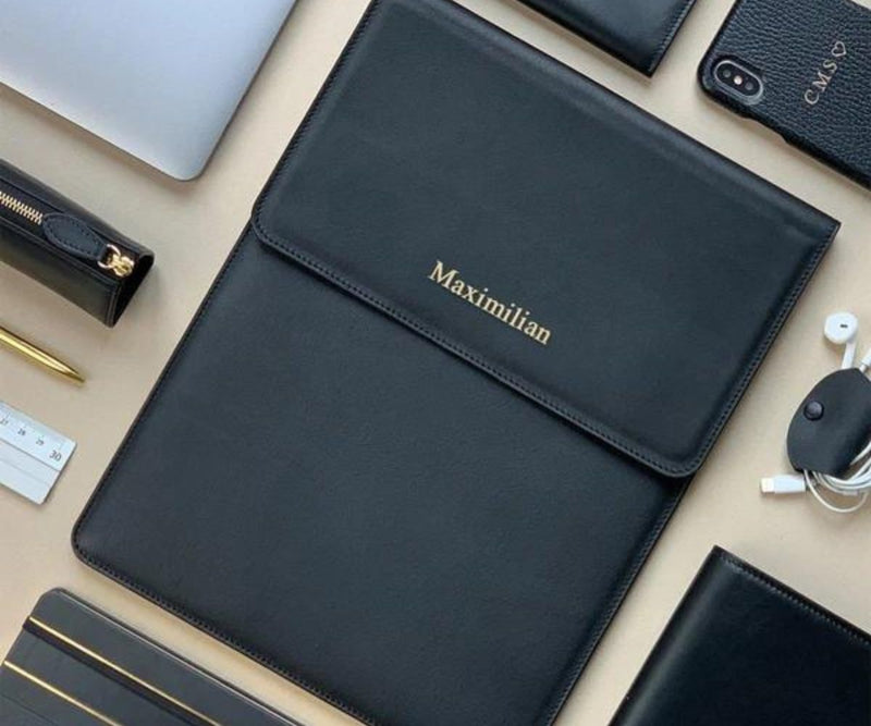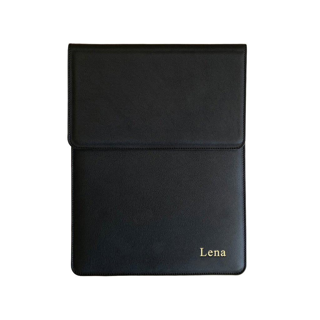 Personalisierte Laptop-Hülle aus hochwertigem Leder.
