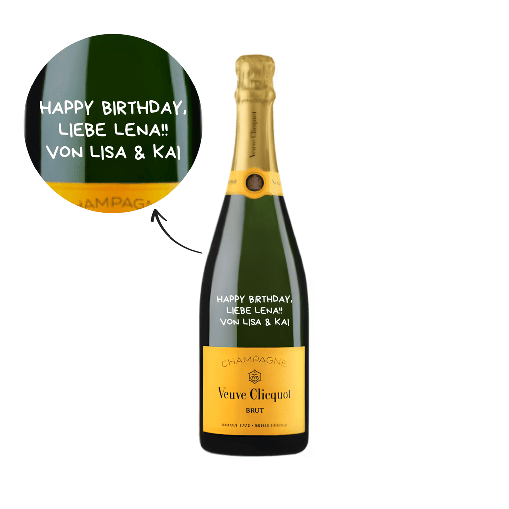 Personalisierter Veuve Clicquot Champagner Brut – inklusive Geschenkverpackung bereit zum Verschenken!