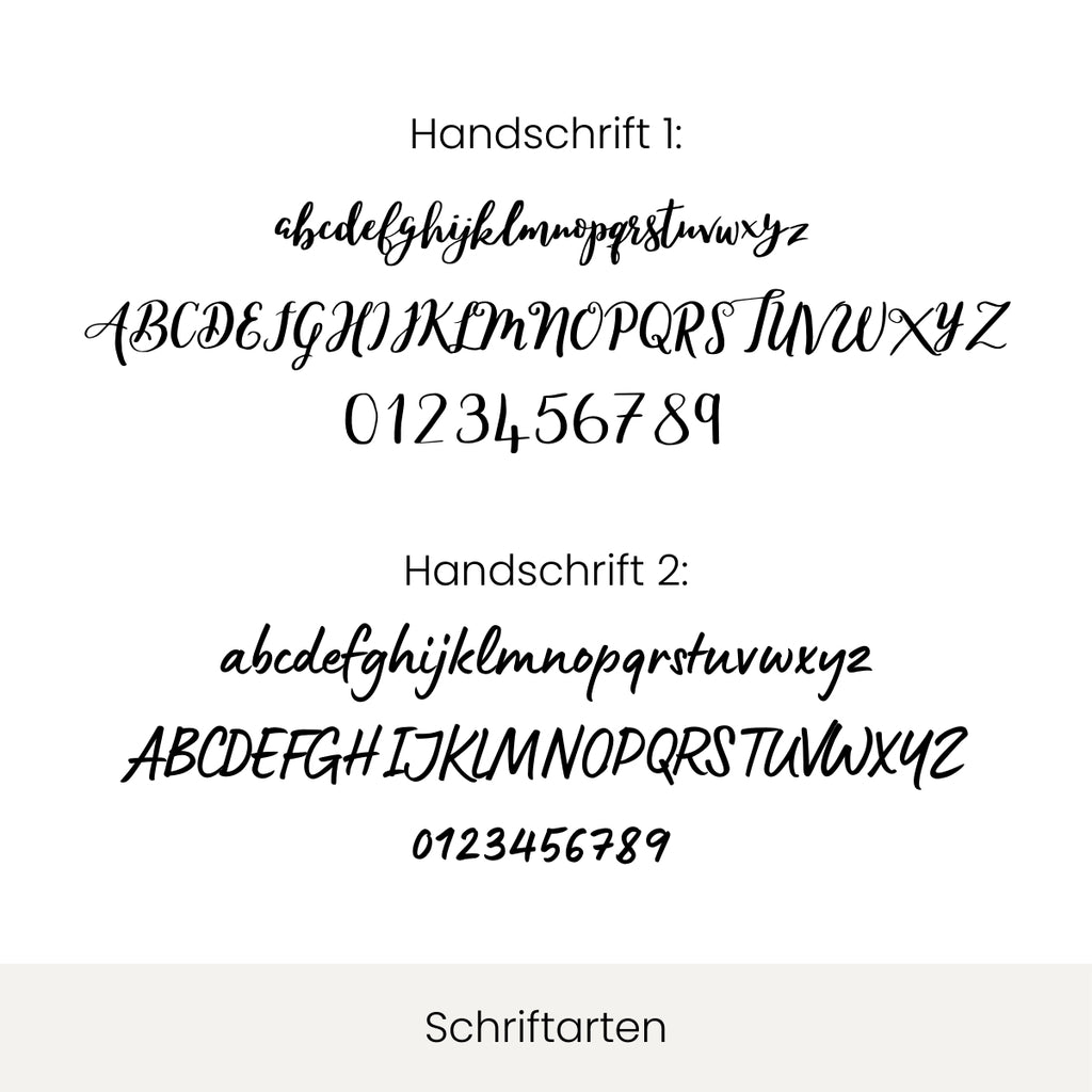 Personalisierung: Optional mit individuellem Namen oder Spruch personalisierbar. Wähle zwischen zwei Schriftarten (Handschrift 1 oder 2).