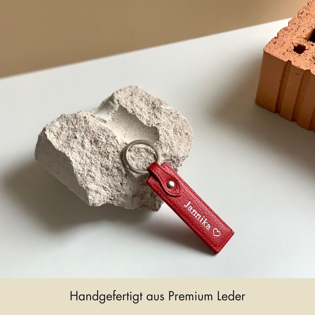 Schlüsselanhänger Classic genarbtes Leder | Scarlet & Silber Schlüsselanhänger Classic genarbtes Leder | Scarlet & Silber