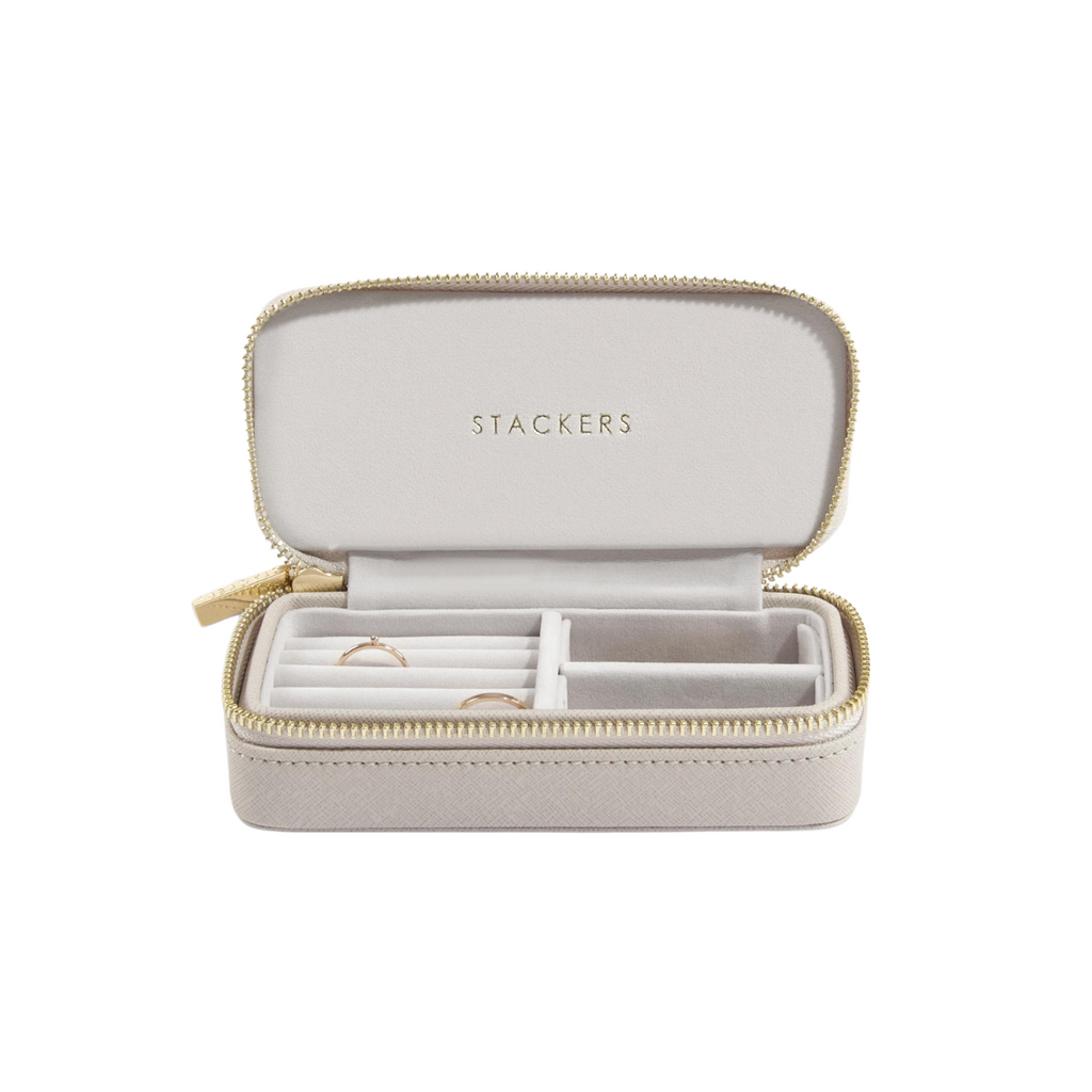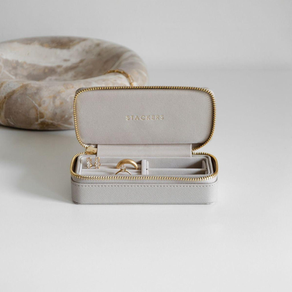 Die Schmuckschatulle in Taupe von Stackers ist personalisierbar mit Namen oder Initialen. Die Britische Marke steht für hochwertige Reise-Accessoires – perfekt für Deinen Schmuck.